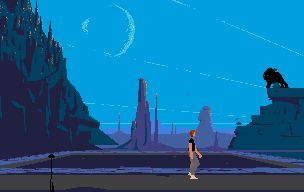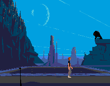 It is well-known that the 3D0 version eliminates Freitas' music entirely and uses redrawn backgrounds with more detail. Chahi approved of neither change, feeling the backgrounds gave too much detail and did not work well with the polygon character models. What may not be so well-known is that the ending has been extended. The alien returns Lester to the ruins of his village, and once there the alien recalls how his village was attacked and he was captured. This same sequence is used, more or less, in the Sega CD version, but Heart of the Alien is not included in the 3D0 version.