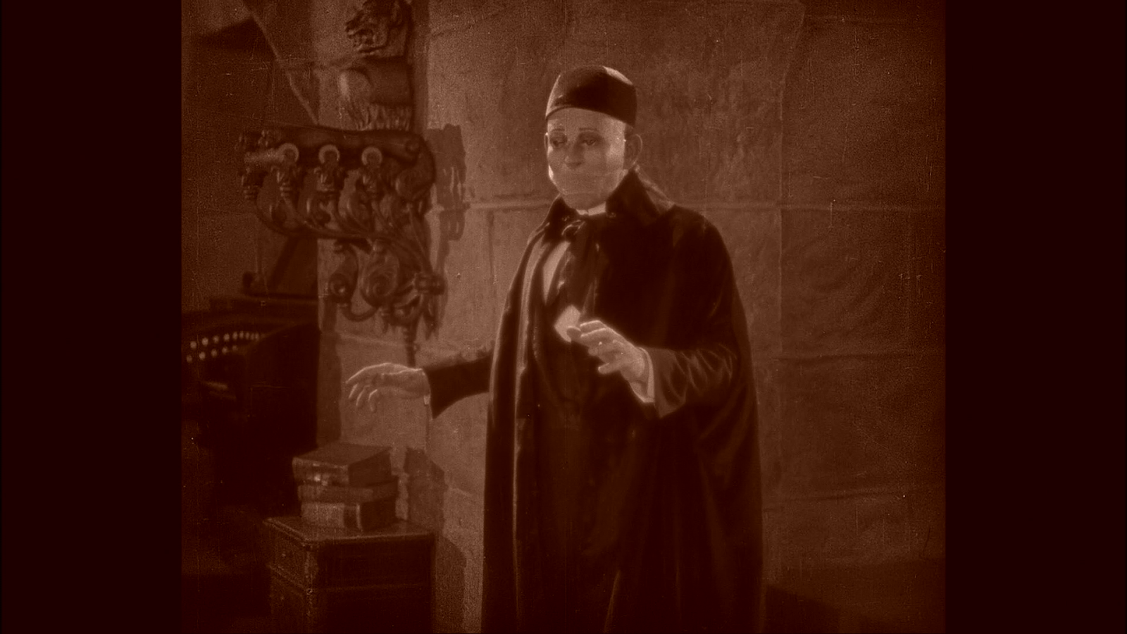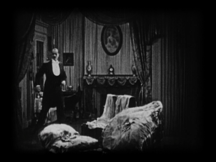 As has been noted by others, the Image 24fps version had some amount of post-processing work done to reduce the scratches and wear on the print. However, no attempt was made on either Image version to remove large hairs that pop in the edges of the frame, large scratches or a broken film perforation fragment which appears as Christine meets the Phantom for the first time. People have stated that the Image 20fps version, while looking more worn, also looks more natural and less processed. Milestone and BFI seem to have made attempts to clean up their video presentation of the major blemishes and scratches. There is no broken film perforations in these versions.