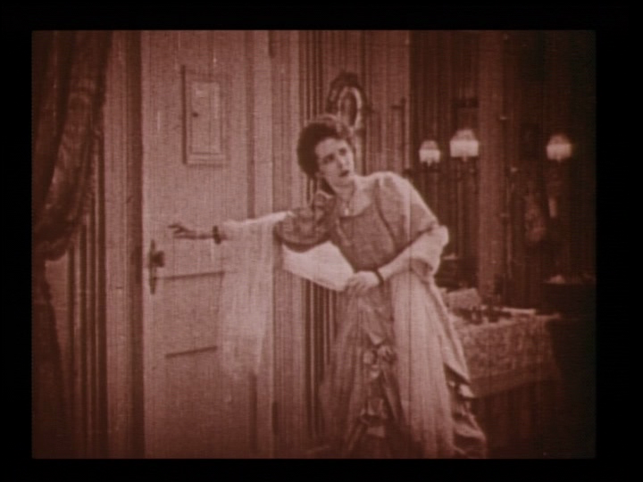 The Image Blu-ray Hampton Print seems like someone started to tint the film but did not finish. Virtually all the film is in sepia or in a bluish white that barely looks like tint at all. With sepia scenes, the color occasionally flickers to purple or red. There are very few indications that someone made a defensible choice of tinting. Interestingly, the switch to green when Christine pulls the mask off the Phantom's face is the only time where an intentional choice appears to have been made, but one I have never seen in any other print or version of the film. Considering the standard resolution of the film, the tinting makes it slightly harder to distinguish detail.