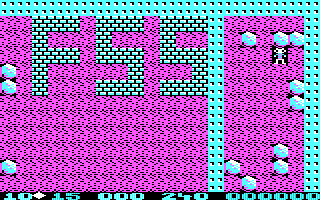 I have never encountered an executable of Boulder Dash that uses anything other than the light cyan, light magenta, and bright white palette. I have more screenshot comparisons of the PC vs. the PCjr. executables, but hover over the images in the left column to see what they look like with the Prism Leisure Corp. PC executable :