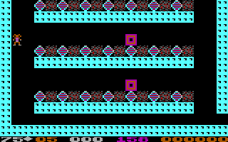 Why is this so important? Because Boulder Dash was meant to be played with an Atari-style digital joystick. Actually it really plays best with a Sega Genesis gamepad, but U.S. and European computer gamers did not have anything quite like that back in 1984. Playing Boulder Dash with a keyboard is an extra challenge because you often have to be extremely quick to dodge falling boulders and roaming fireflies and butterflies. The earlier Atari 8-bit and Commodore 64 ports (the PC/PCjr. port came third) support digital joysticks.