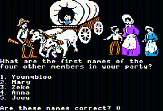 The Oregon Trail is the simpler game, in fact it was an update of an earlier version MECC made for the Apple II in 1980.  That version was mostly text-based and occasionally displayed simple wire-frame graphics and a little music.  Before personal computing, Oregon Trail was played on mainframes on a time-share basis.  But the 1985 Apple II version is undoubtedly the most popular version of the game.  The 1985 version requires 64KB of RAM on an Apple II.  This version was ported to the PC by MECC in 1988.  The PC port requires 512KB of RAM and at least a CGA card.