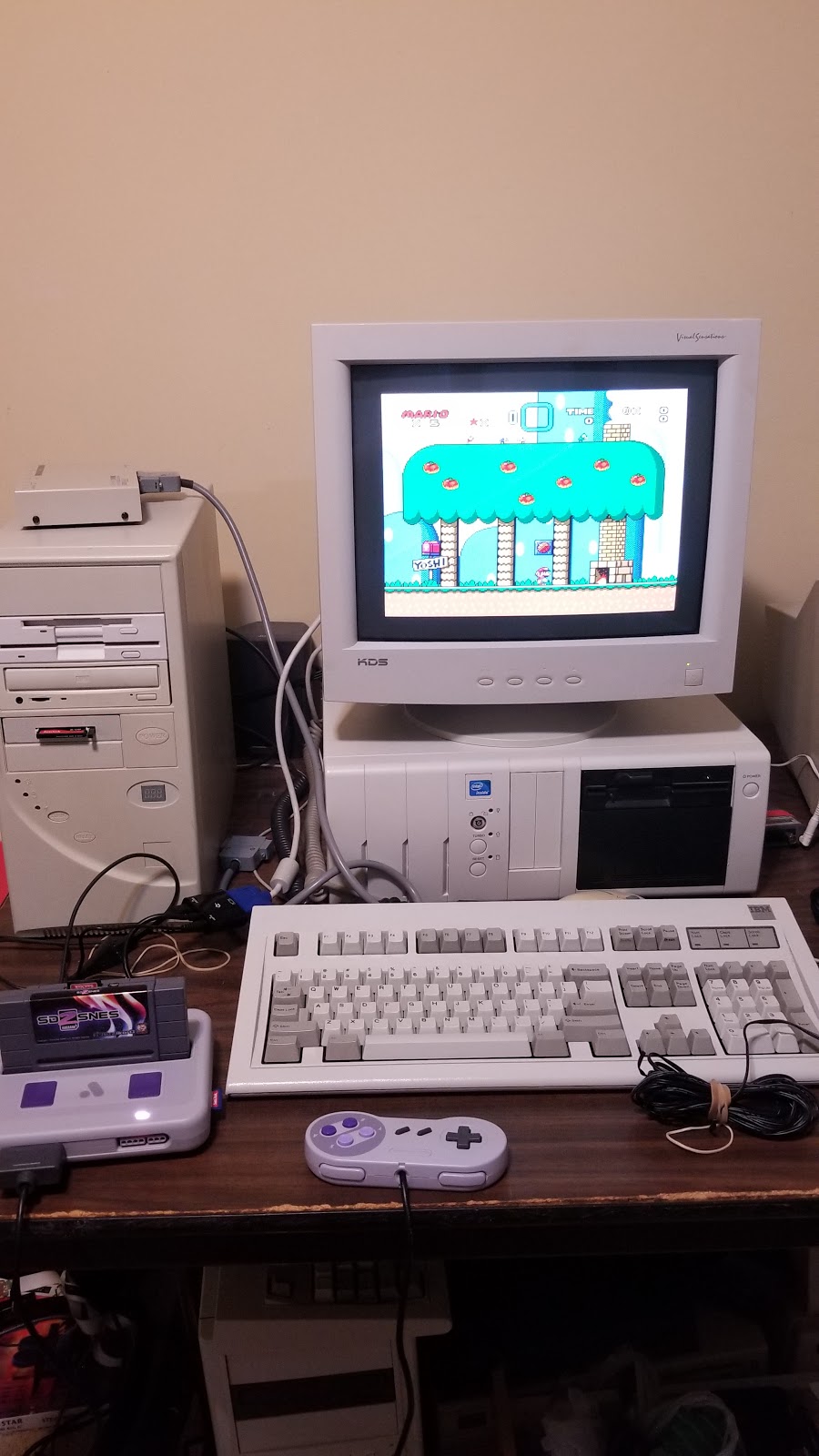 The monitor I own is a KDS VS-7p, a 17" CRT that can display a maximum resolution of 1280x1024. However, the monitor is a tad fuzzy at that resolution and its recommended resolution is 1024x768. Like most VGA monitors, it requires a 31KHz horizontal scan frequency in order to display anything. My Nt Mini can output an RGB signal, but it is only 15.75KHz.