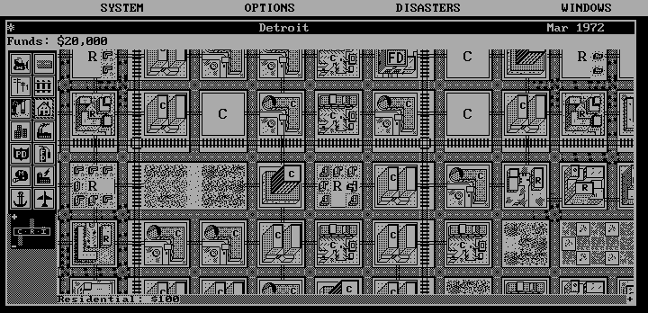 CGA Support - The PCjr. had only basic, BIOS CGA support since it did not implement the crucial Color Select and Mode Control registers. Although the PC Convertible uses a CGA-friendly 640x200 LCD resolution, the built in video is not particularly CGA compatible either. Color text-mode attributes were not supported on the monochromeLCD, it was either normal video, reverse video or no display. 320x200 graphics would display three shades of gray plus black, but the graphics take up the whole screen, meaning they are twice as wide as they should be. The built in LCD does not distinguish between 640x200 and 320x200 in this instance. The MC6845 was only emulated enough for the basic modes, the color select register is not present and the mode control register has missing bits compared to real CGA.