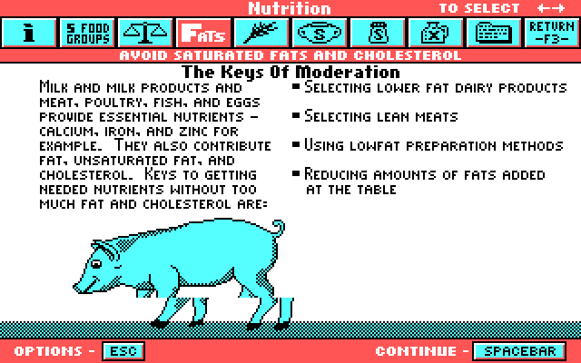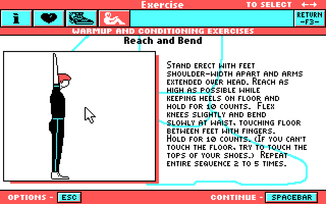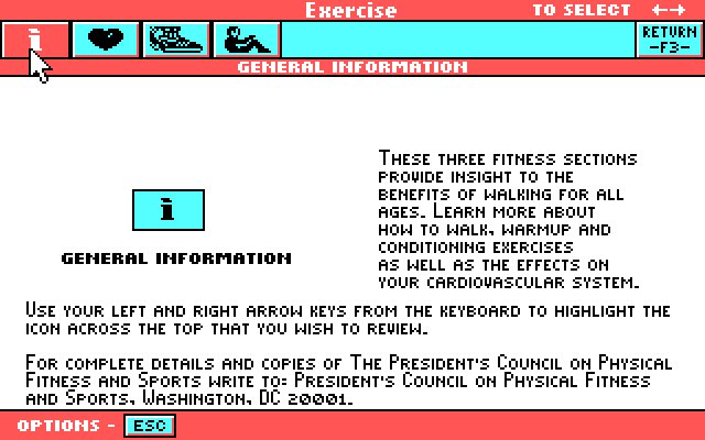 As you can see, there is a disconnect between the Buick advertisement portion of the program and Exercise/Nutrition portion of the program.  Who would expect detailed, if out of date, dieting advice on a program issued to Buick dealerships?  The Exercise/Nutrition portion is very elaborate, its as if someone at Buick liked the presentation and decided to advertise their automobiles with it as well.  If they kept it to the cars, they probably could have fit everything on one floppy.