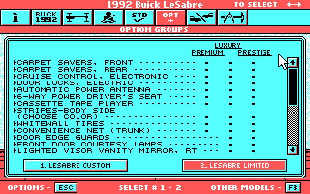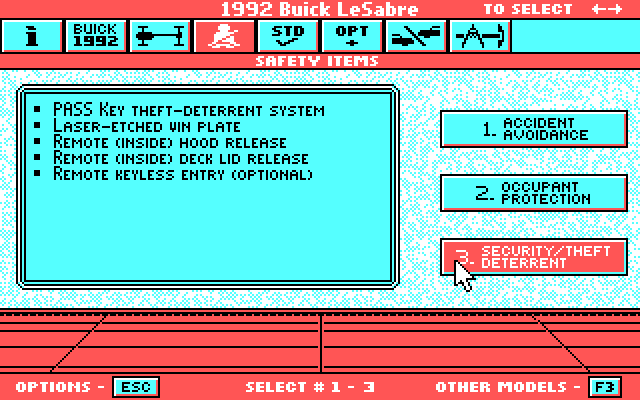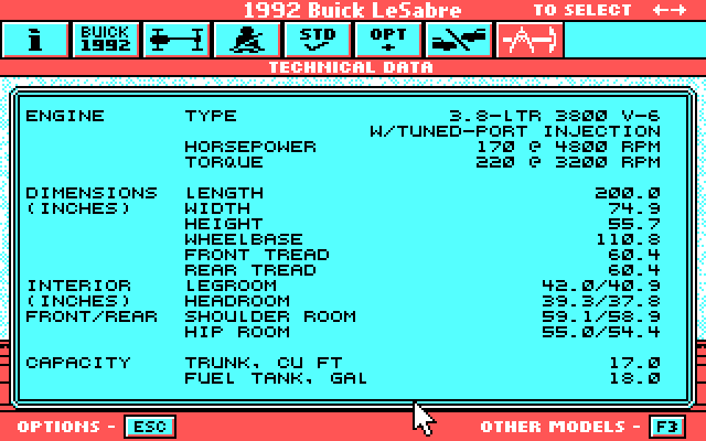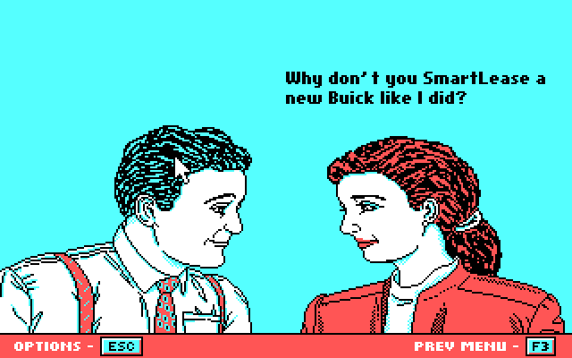 Despite the RealSound credit, all the music is standard PC speaker, not digitized or tweaked PC speaker. The ASCII Art Buick logo is really well-done.